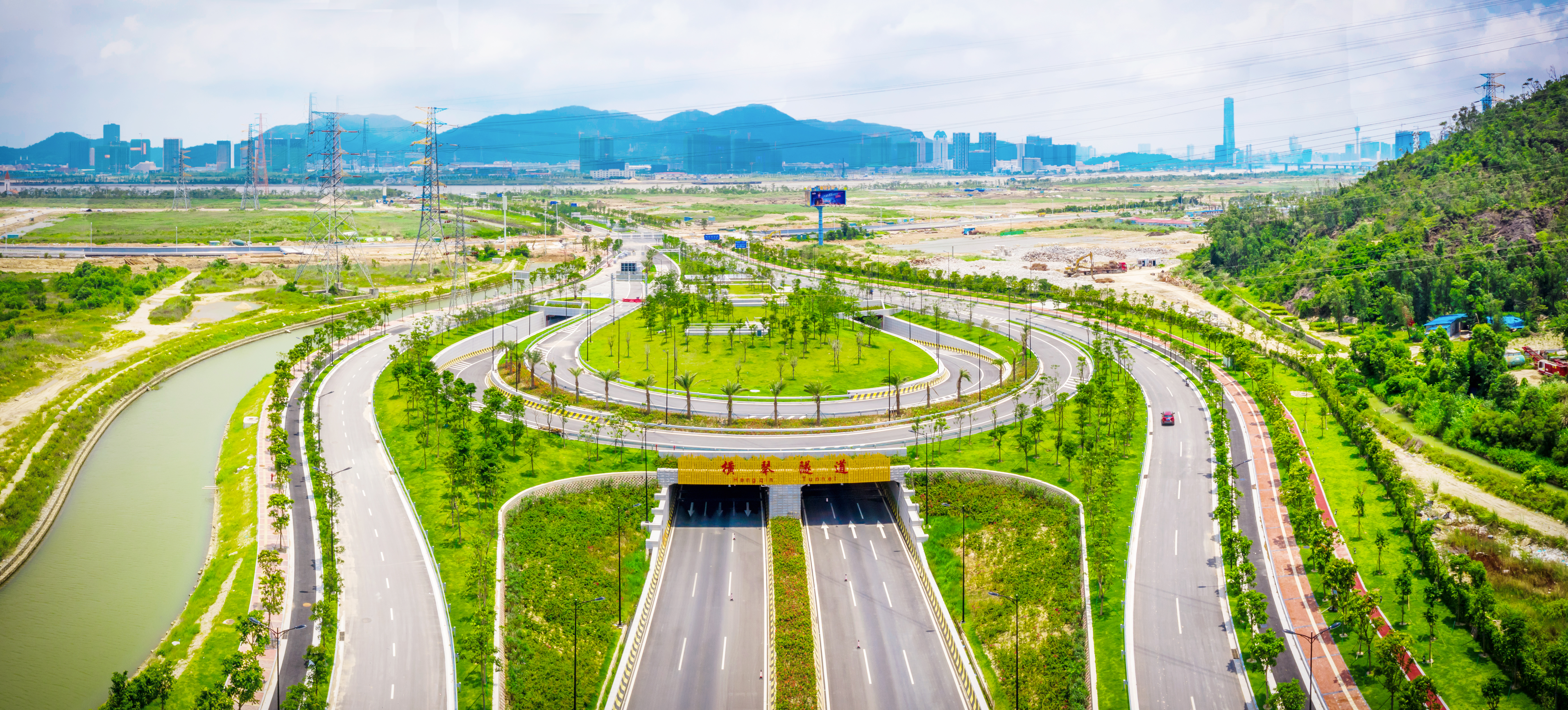 横琴隧道连接保税区和横琴,工程范围南起横琴中路,下穿环岛北路,过马骝洲水道后,向北至南湾大道;路线全长约2834.6m,其中过马骝州水道段为圆隧道段,单管设置单向3车道,两管组合形成双向六车道,隧道外径14.5m,长约1081.6m。采用盾构法施工,该隧道为华南地区首条海域超大直径盾构隧道。