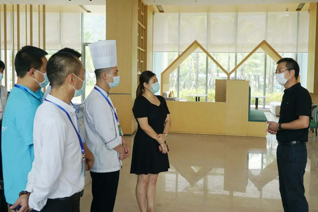 祝杰一行到星乐度希尔顿花园酒店看望奋战在疫情防控一线的工作人员,转达了集团公司对酒店全体工作人员的节日问候,向坚守在一线的酒店职工送上了慰问品,并详细了解职工的个人防控措施、餐饮等细节。