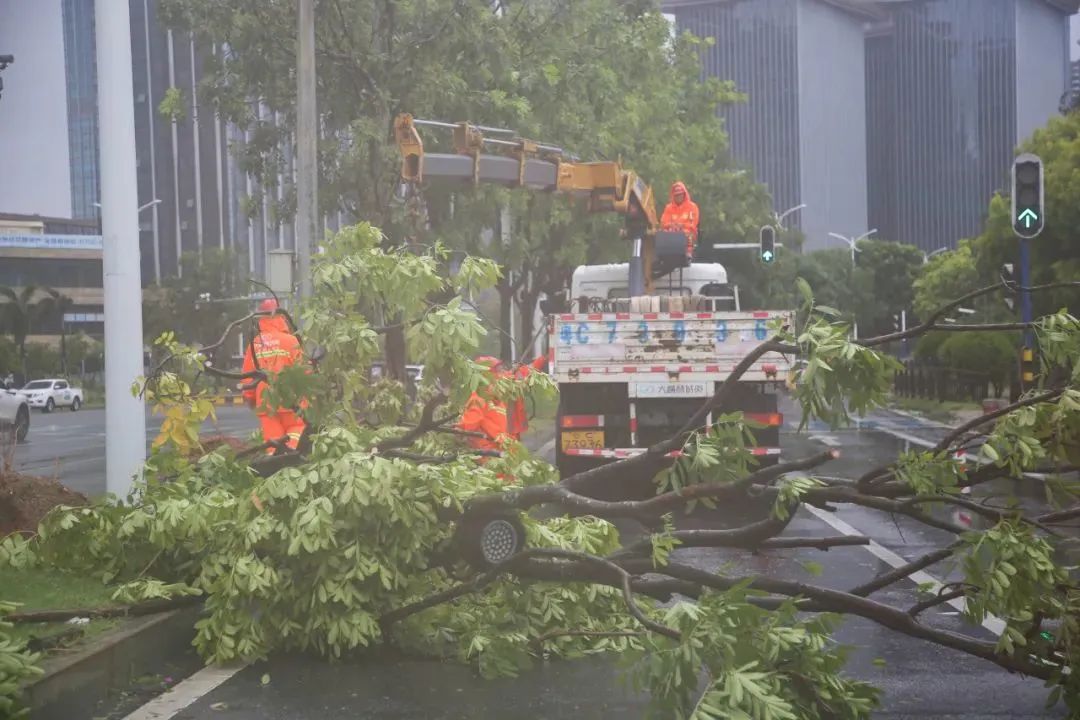 台风过后,球盟会体育城资公司应急抢险队伍迅速投入到清障、清淤、排涝等抢险工作中,快速完成人工清障。9月2日下午两点,机扫车已在合作区主干道全面开展清扫作业,包括清除主路的倒伏树木、搬运切割下来的树干树枝、清扫地上的落叶和垃圾、冲洗淤泥、疏通路面积水、清理倒伏的水马等,助力合作区尽快恢复道路原貌。