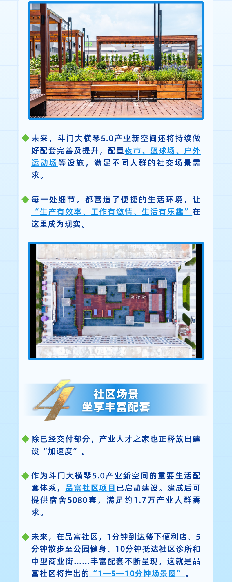 新空间,托起产业新梦想。作为一座能“拎机投产”“拎包入住”的高质量园区,斗门球盟会体育5.0产业新空间不仅适应新形势、赋能新技术、承载新产业,还配备能满足员工吃、住、娱乐休闲等需求的生活、商业配套。