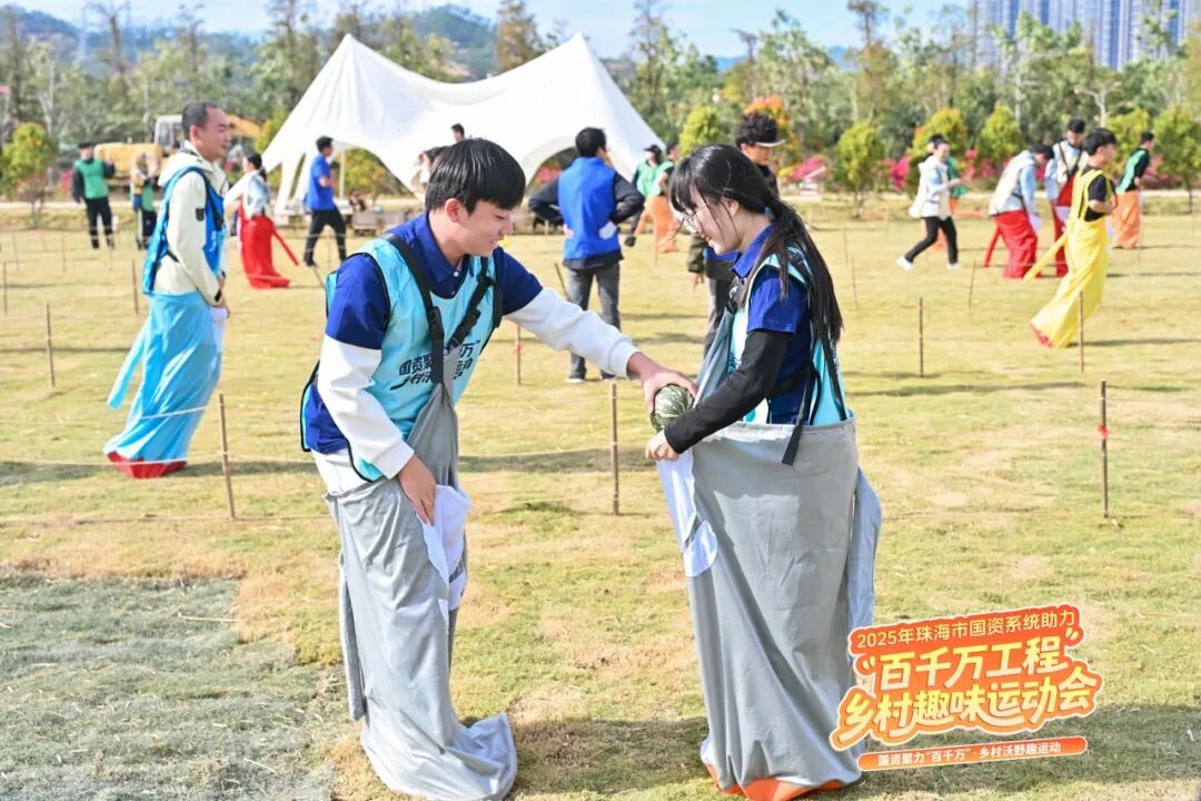 11月21日,由珠海市总工会与珠海市国资委联合主办、珠海市球盟会体育集团控股有限公司承办的珠海市国资系统乡村趣味运动会在球盟会体育集团斗门世荣草朗生态园火热上演。来自珠海市总工会及国资系统的10支代表队,约300名干部职工齐聚田间地头,以运动为媒,以乡村为舞台,展开了一场别开生面、趣味盎然的竞技交流,在田园乡野间完成了一场体力、协作与趣味的综合较量。